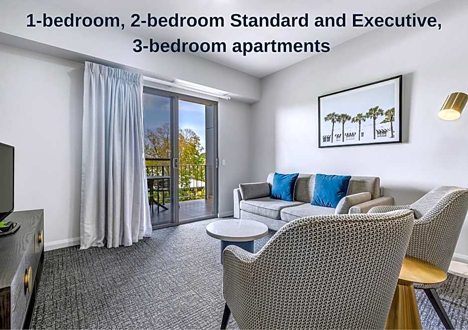 Choose from a diverse lineup of apartment configurations, ranging from cozy Studio and Deluxe Apartments to spacious Executive layouts and multi-bedroom options. Select configurations feature king-size beds—1-bedroom layouts come with 1 King bed, 2-bedroom layouts with 2 Kings, and 3-bedroom layouts with 3 Kings—making it easy to tailor sleeping arrangements for couples, families, or larger groups.